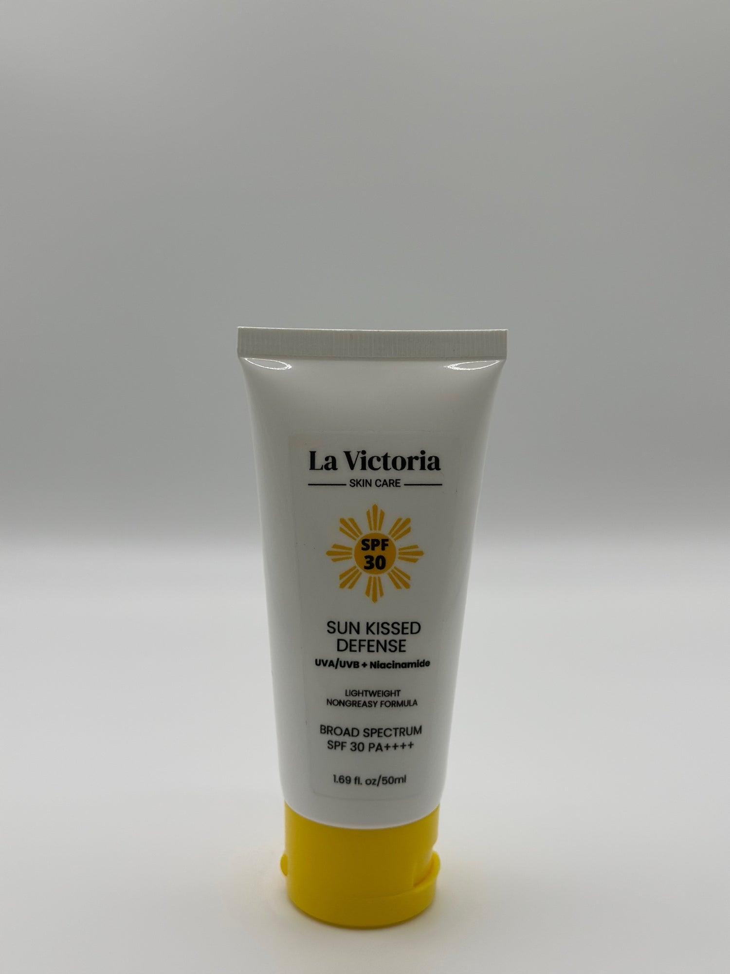Introducing La Victoria Sun Kissed Defense the perfect fusion of luxury and sun protection. Powered by SPF, Niacinamide, and Vitamin C this carefully crafted sunscreen offers superior defense against harmful UV rays while leaving your skin with a natural, sun-kissed glow. With its lightweight, non-greasy formula, it blends effortlessly into your skin, providing a dewy, radiant finish. Whether you’re lounging poolside or enjoying a sunny day, our SPF works tirelessly to shield your skin from sun damage, while enhancing your complexion with a luminous touch.